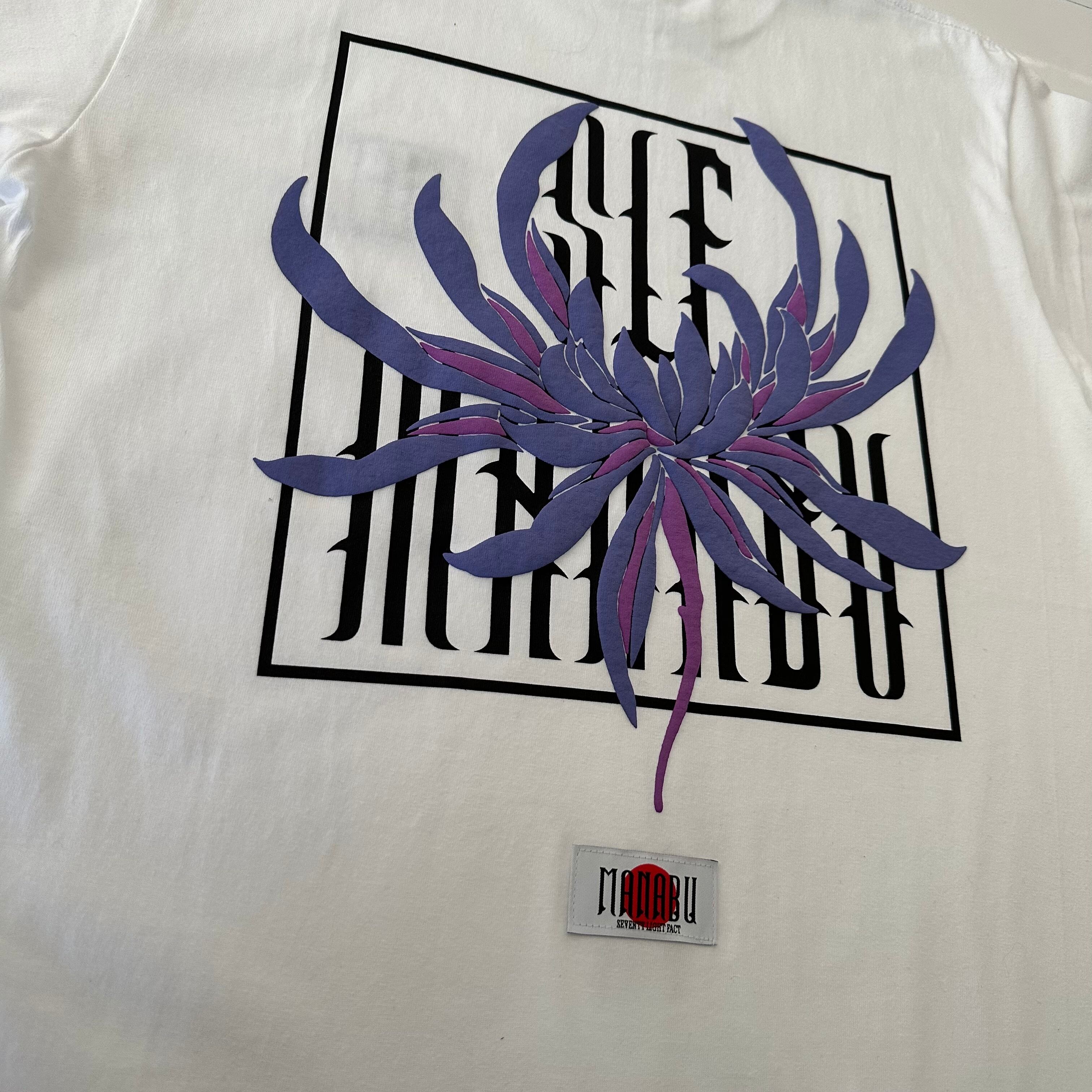 Puff print 菊 T-shirt WHITE ×PURPLE