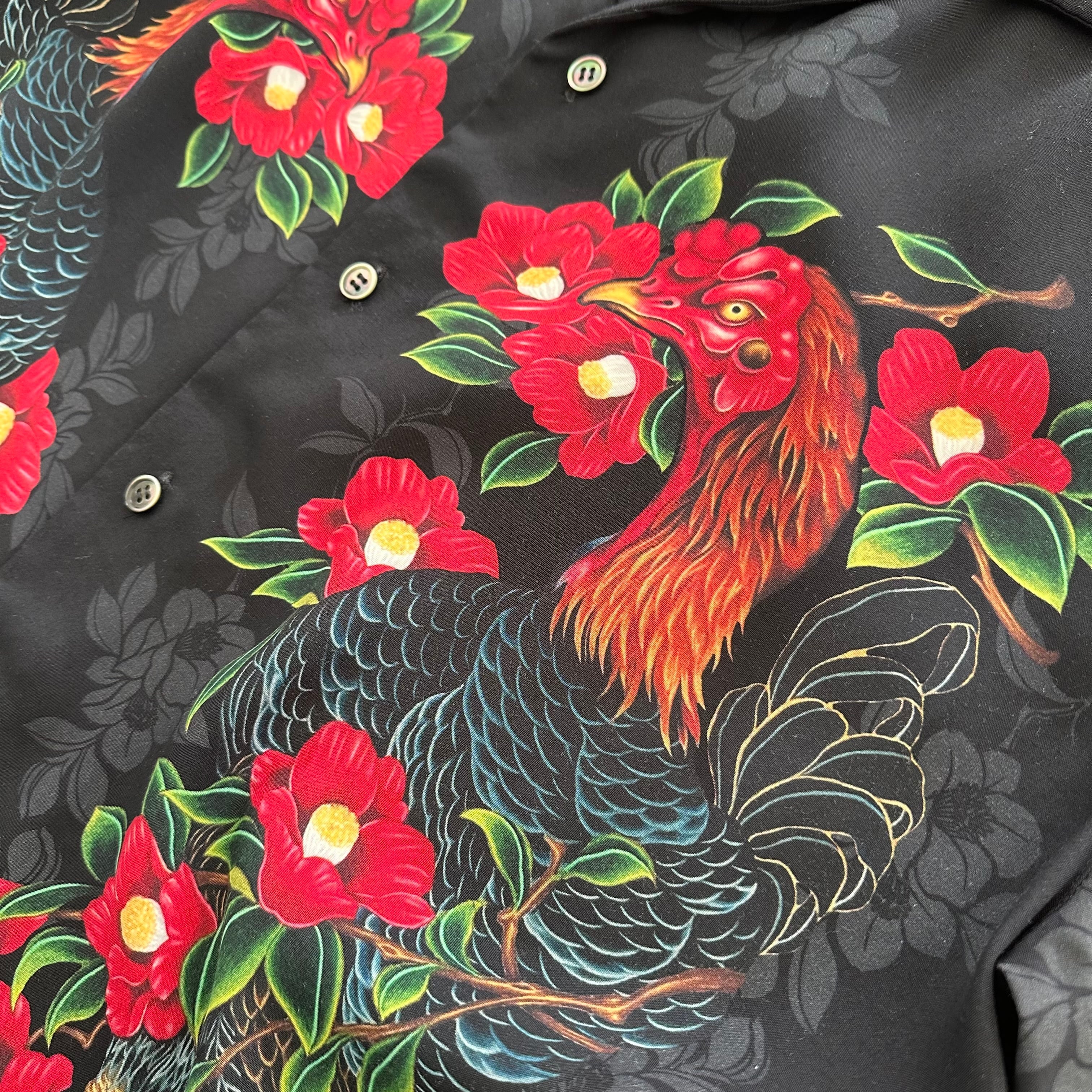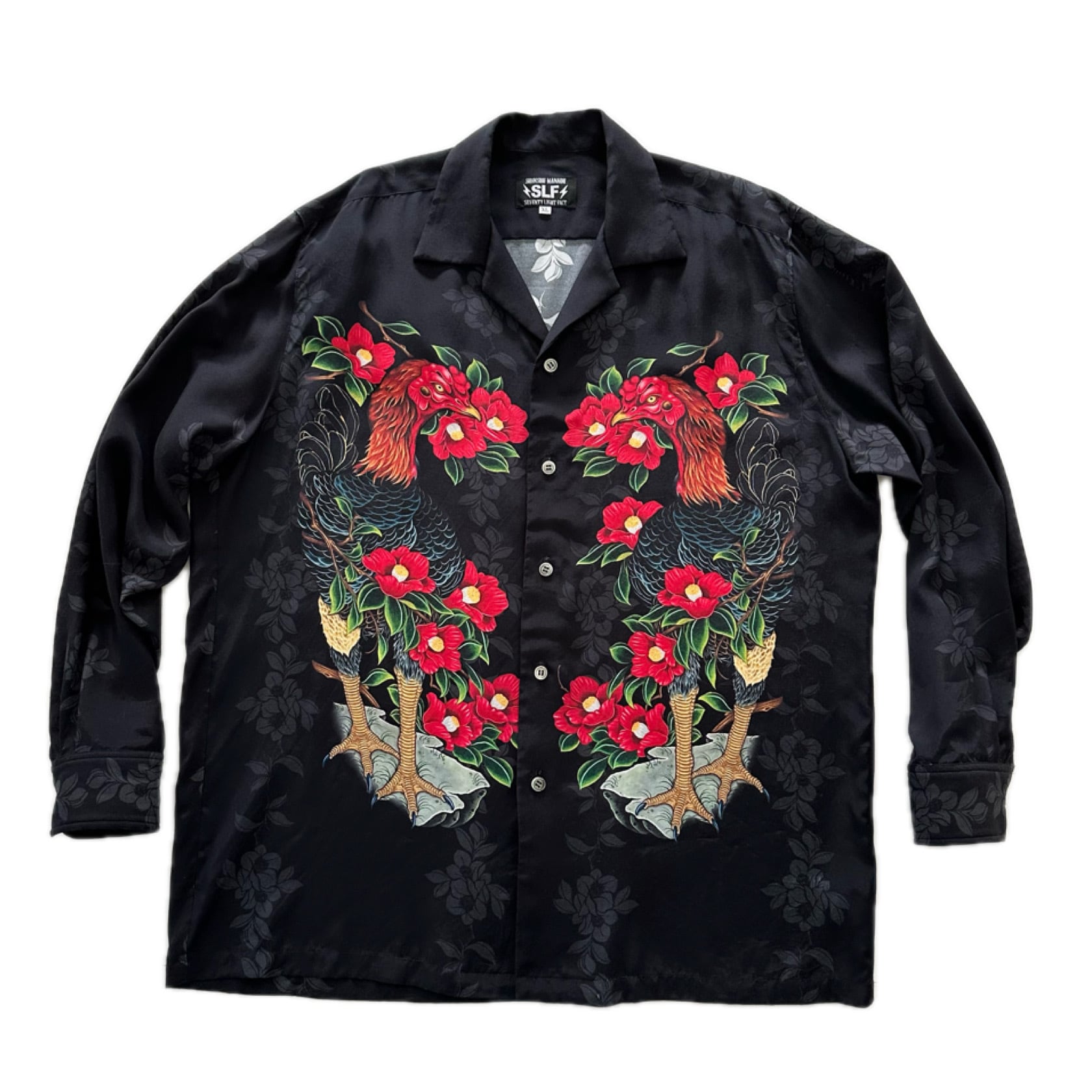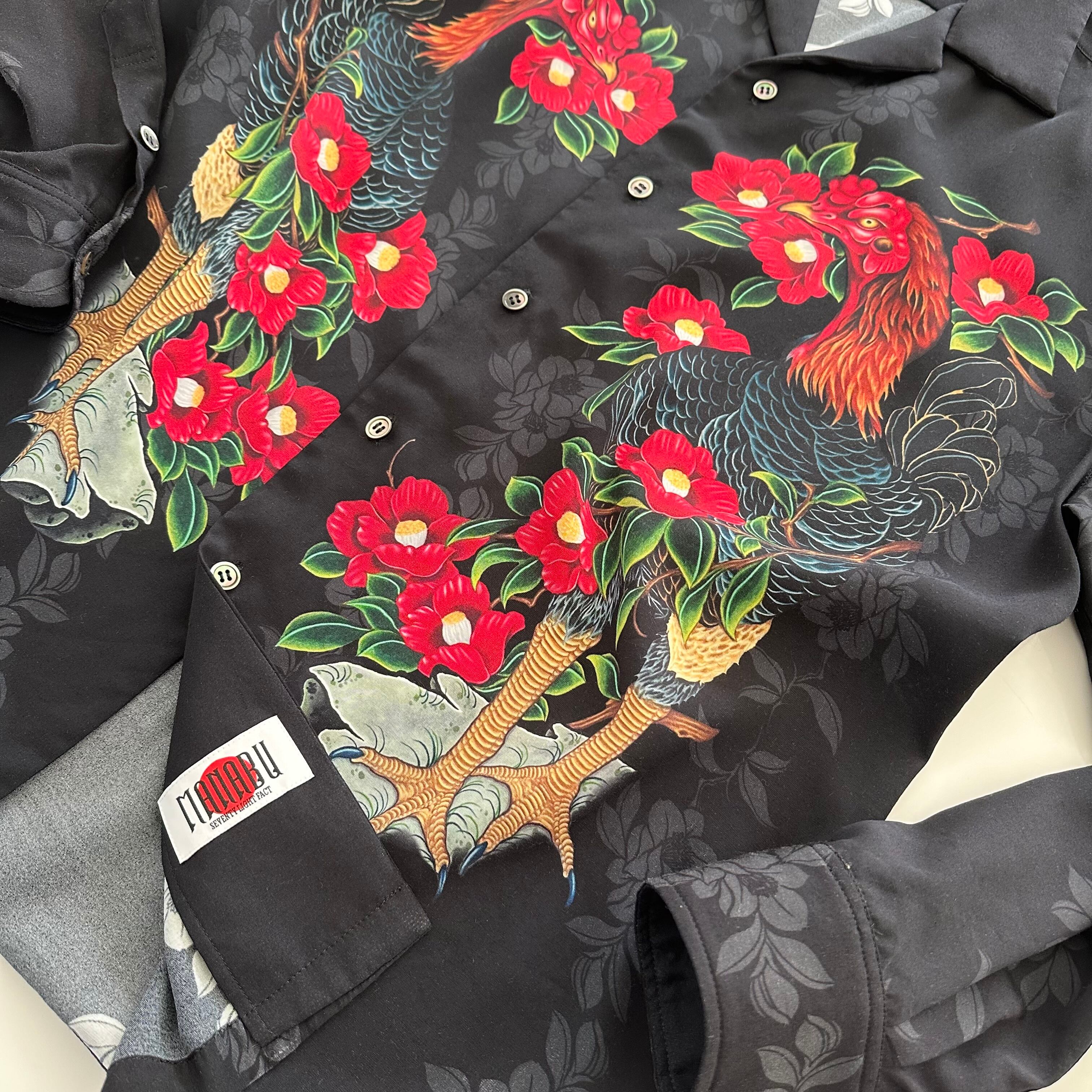 "軍鶏椿" L/S Aloha Shirt rayon100%