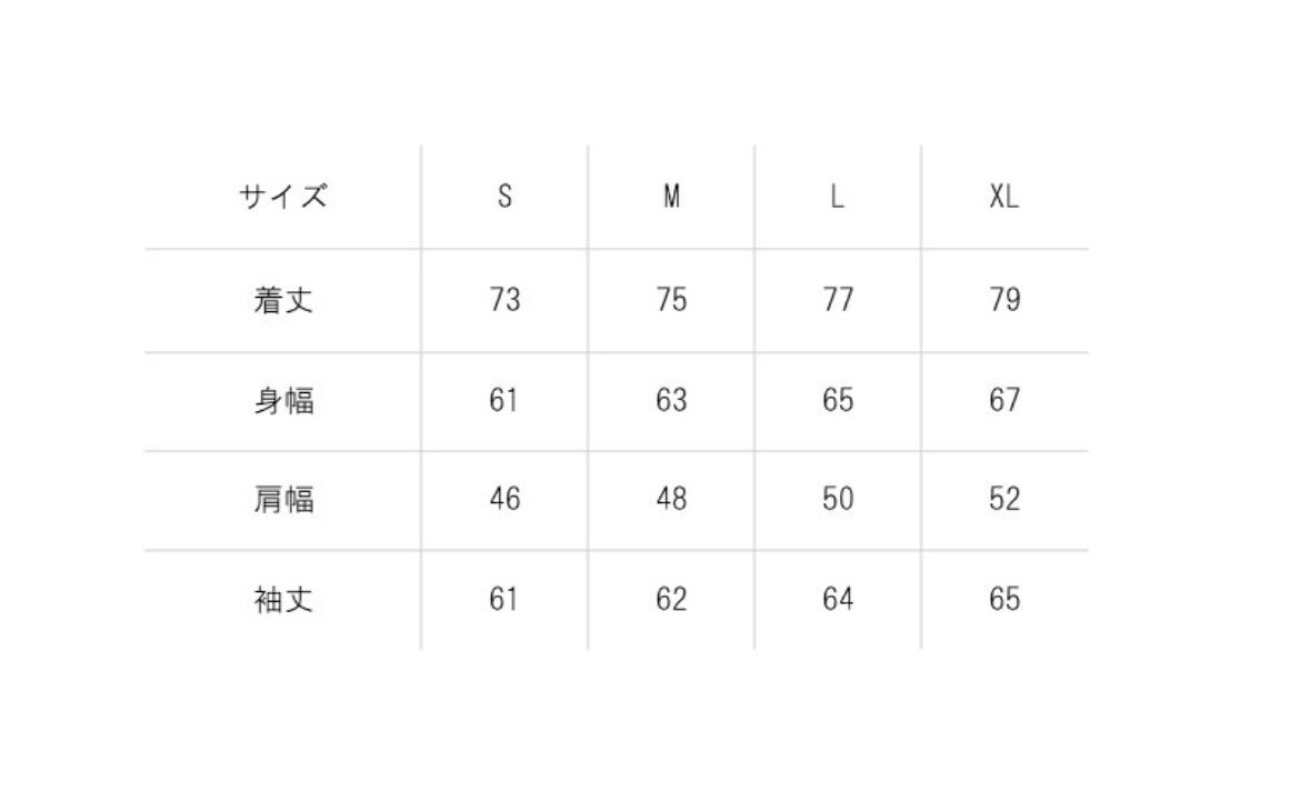 S:着丈:73 身幅:61 肩幅:46 袖丈:61